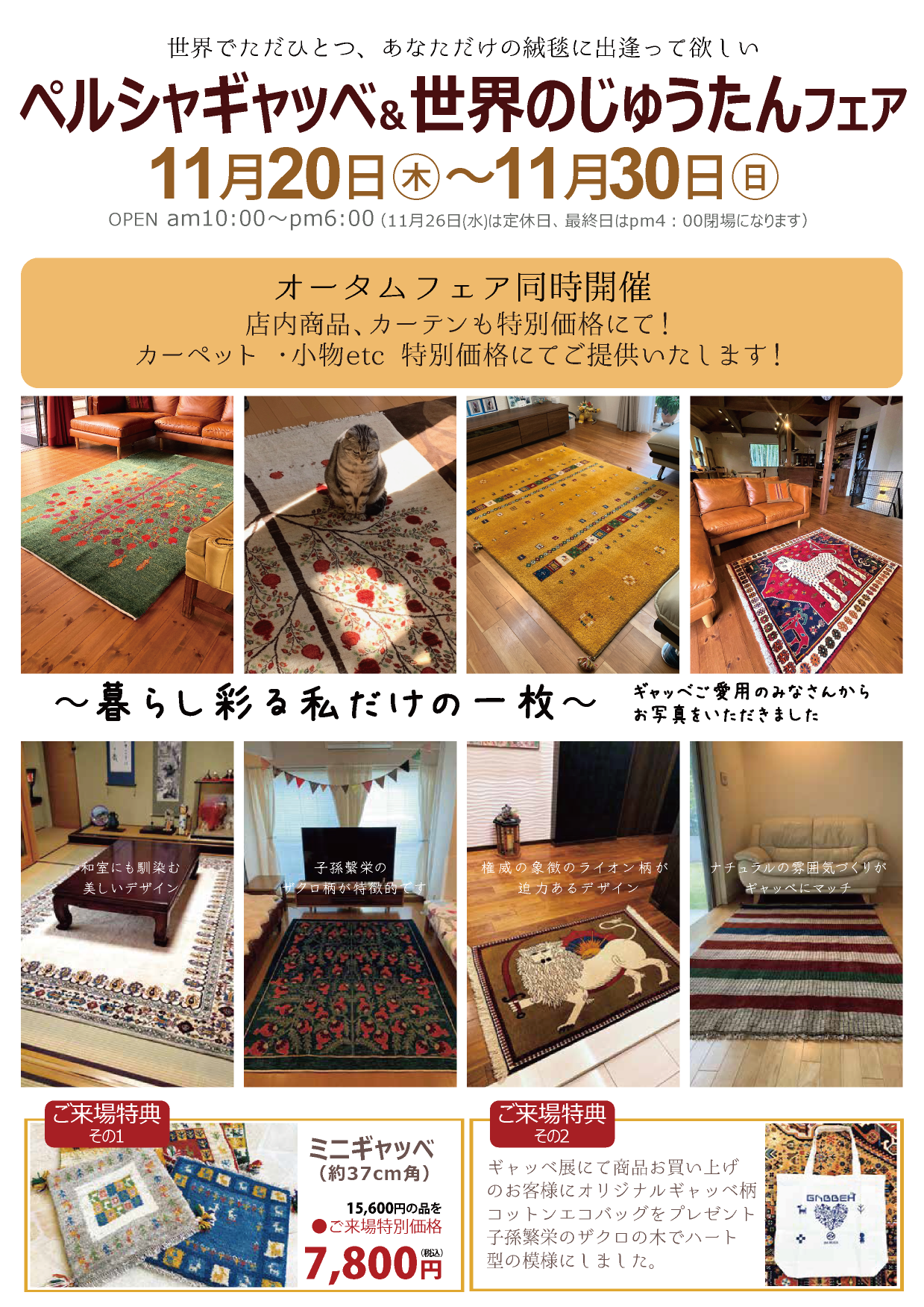 「ペルシャギャッベ&世界のじゅうたんフェア」 を開催いたします。