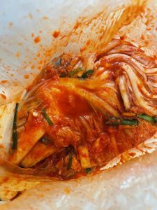 ・キムチのたれは他に付くと赤く染まってしまいます。結構染まりますので注意!