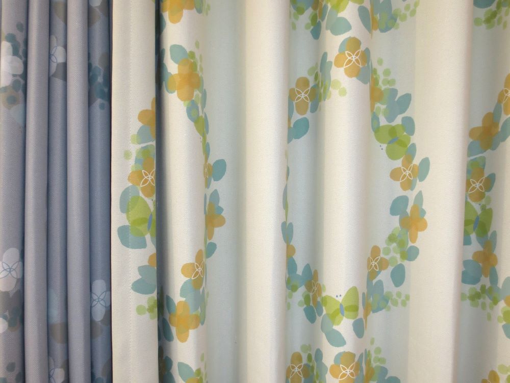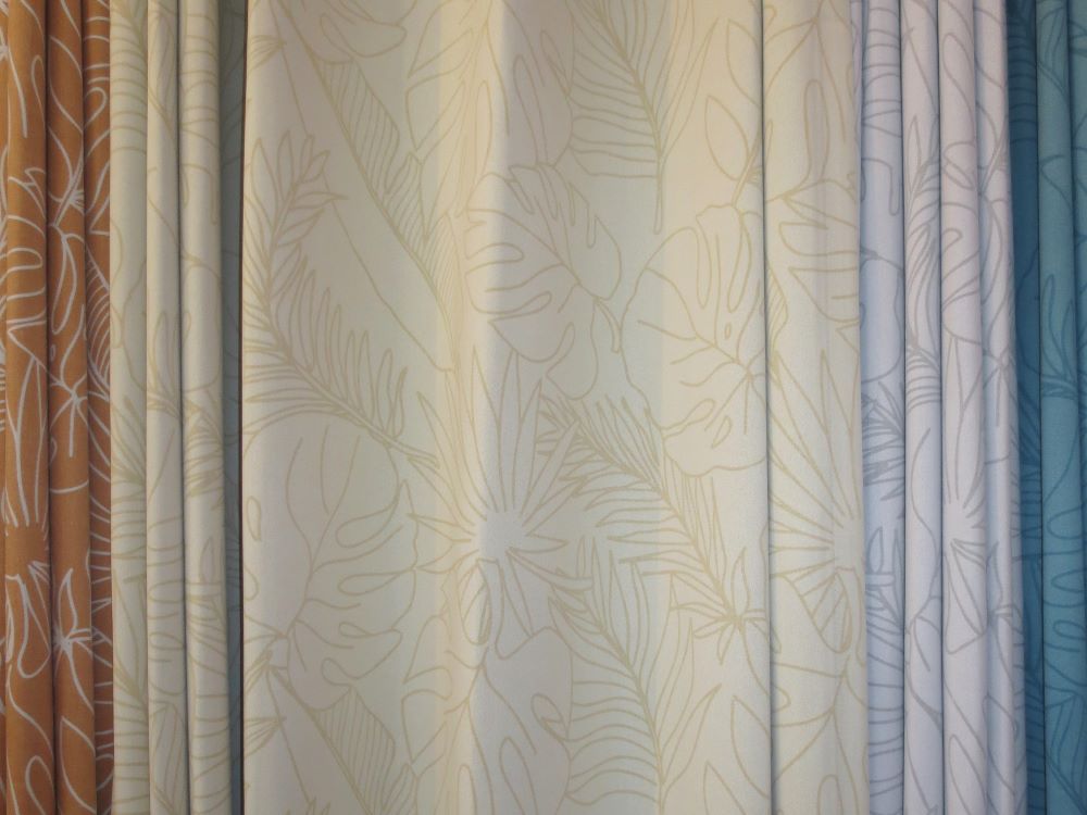 NPカーテンコーナーには新柄カーテンも入荷しています。ボタニカル柄などの柄カーテン3種に加え、オーガニックコットンカーテンも追加。綿生地のカーテンをお手頃価格でご購入できるようになりました。