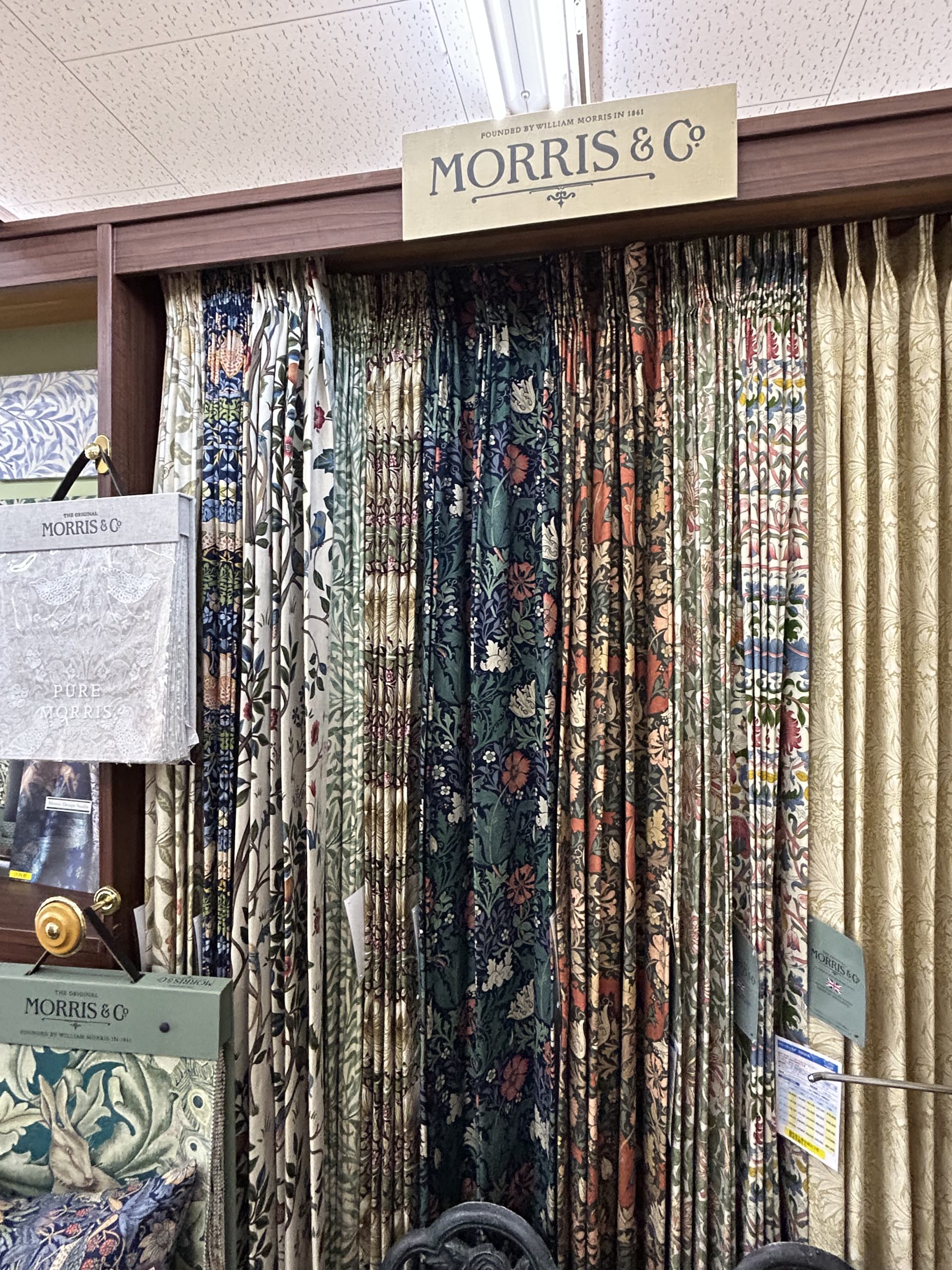 カーテンの工房もありますので、モリスの生地を使ったさまざまな商品も作ることができます。