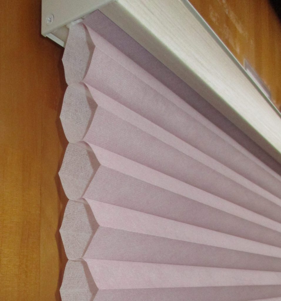 ハニカムスクリーンとは、横から見ると蜂の巣のような六角形のデザインをしたメカ物のことです。この蜂の巣の部分が空気の層=断熱材となり、窓側の温度が室内に伝わるのを防いだり、室内の温度が窓側に逃げるのを抑えたりしてくれます。