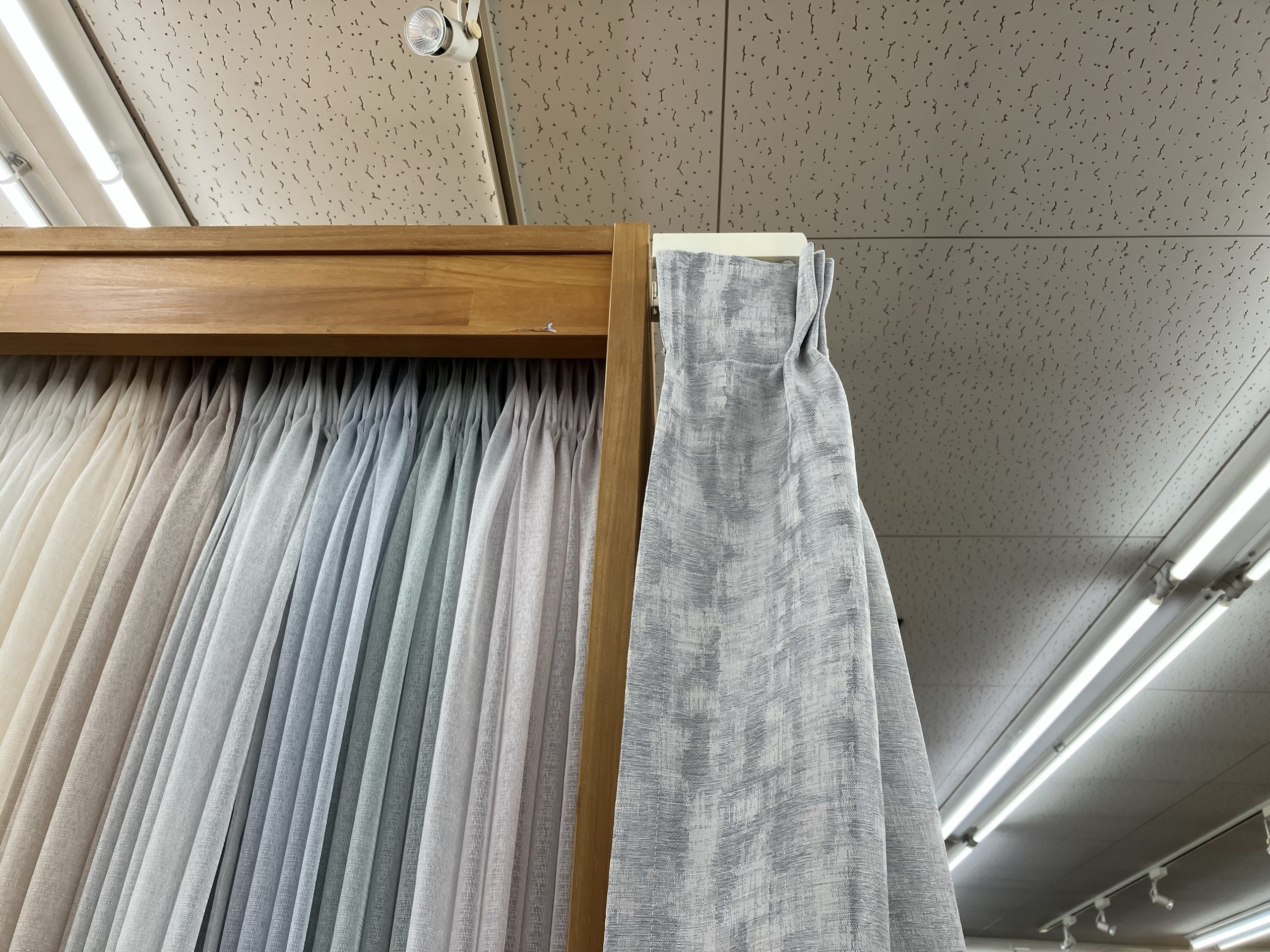 インテリアショップゆうあい松本店に展示中のカーテンのサンプルは、実際にご自宅で柄・色などを合わせてご確認いただけます。
