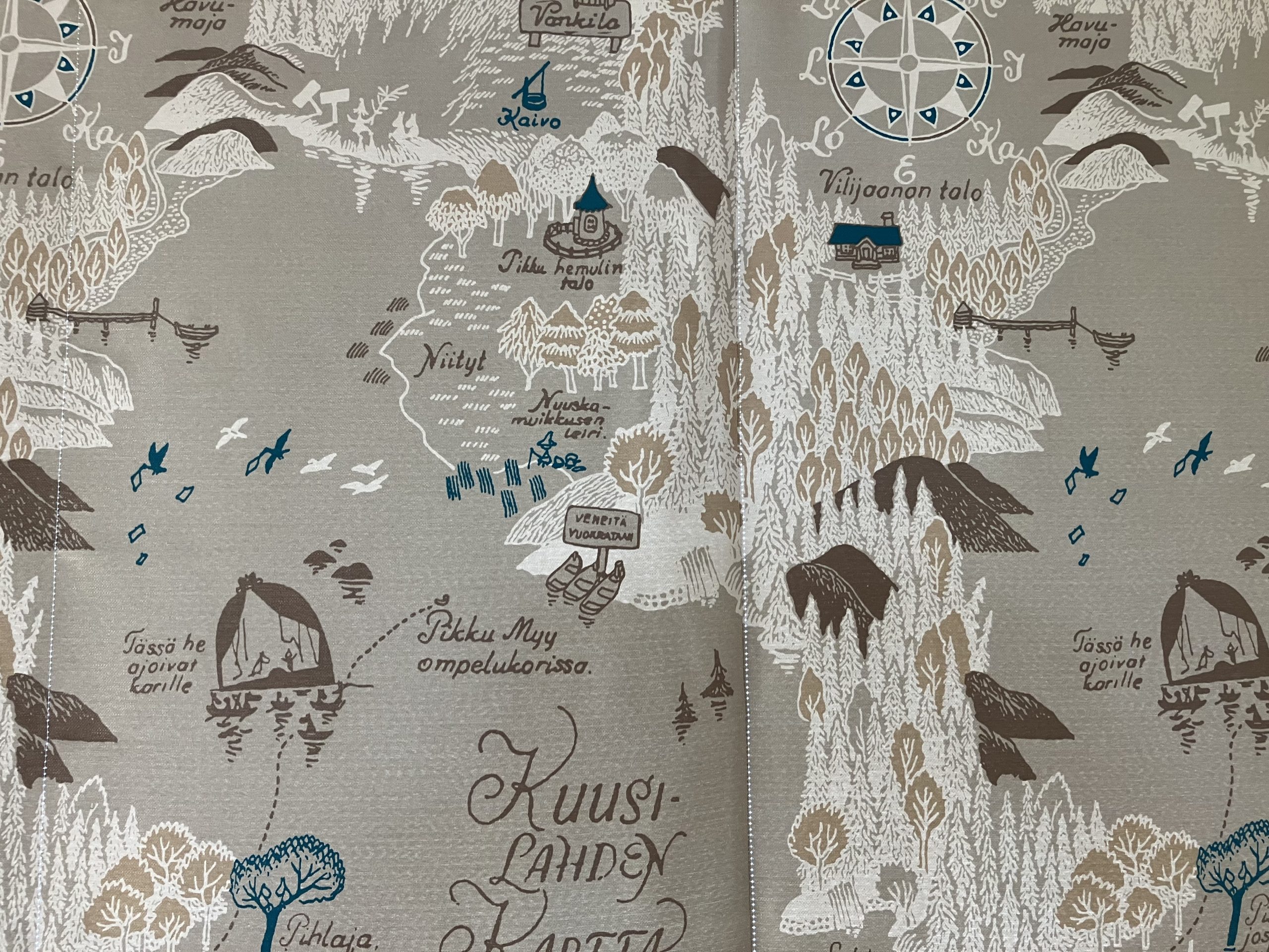 ムーミン一家や仲間たちが暮らす、ムーミン谷の地図がプリントされた、厚手生地。