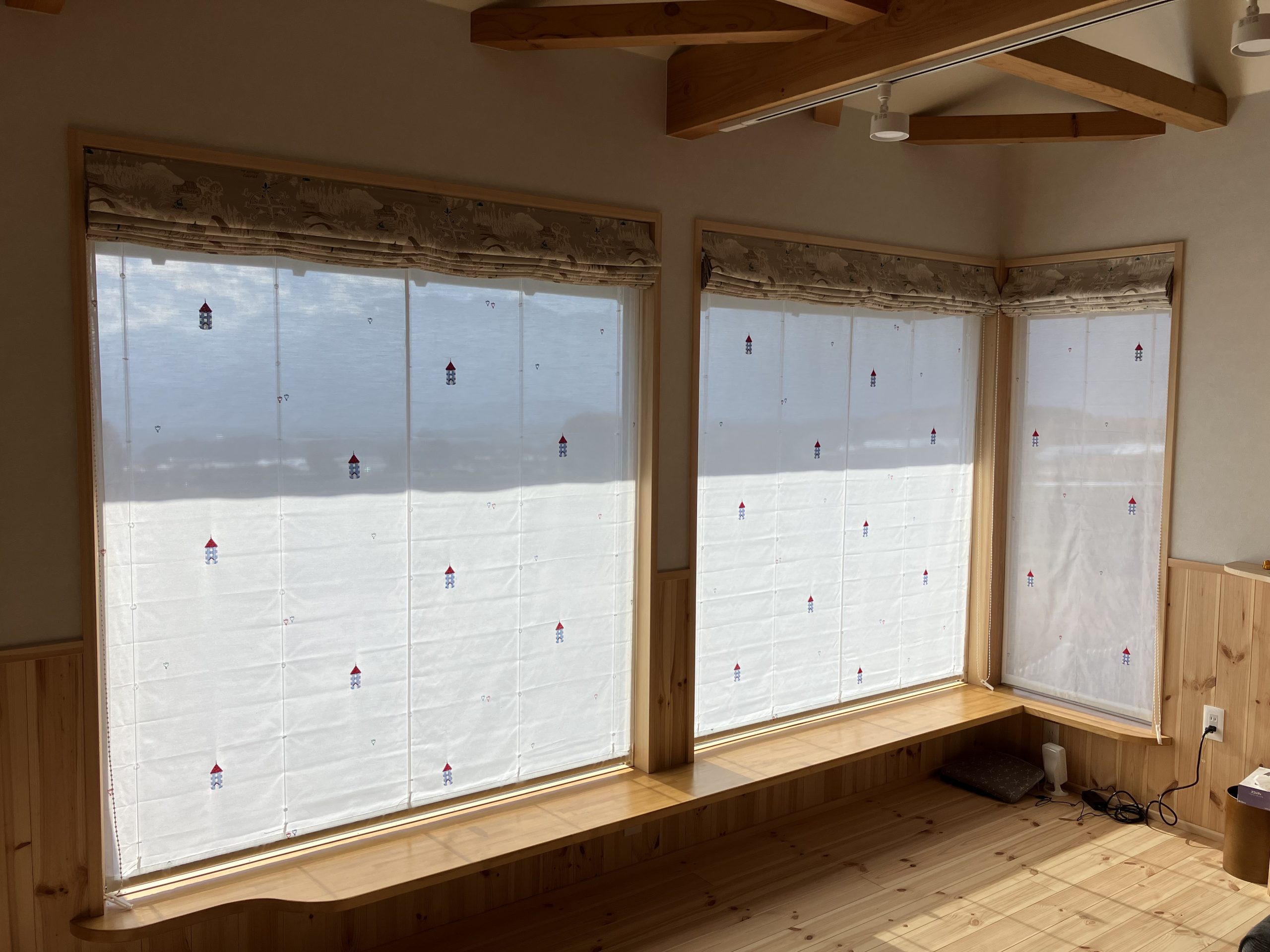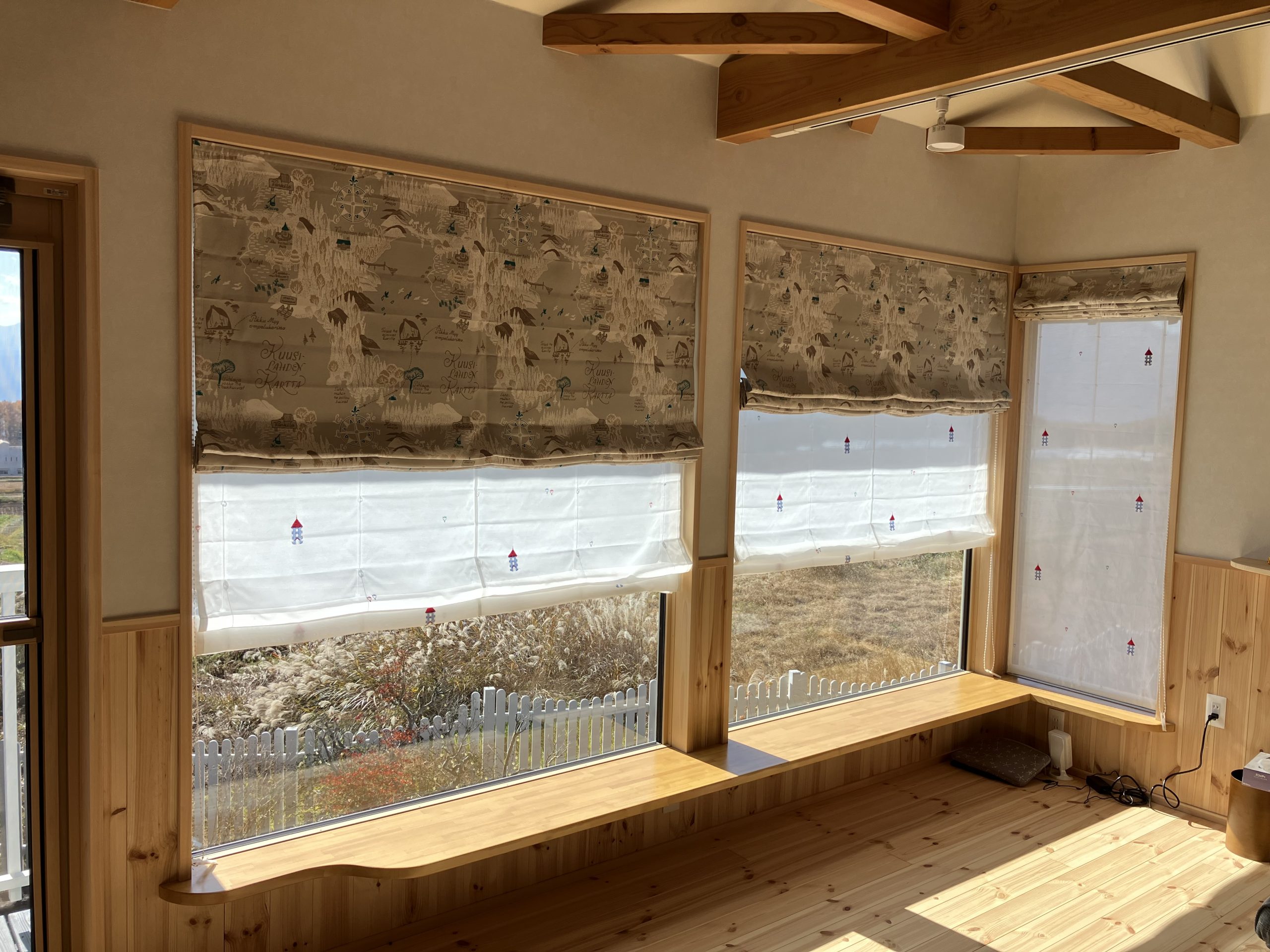 南に面した窓に、ダブルシェードを設置しました。