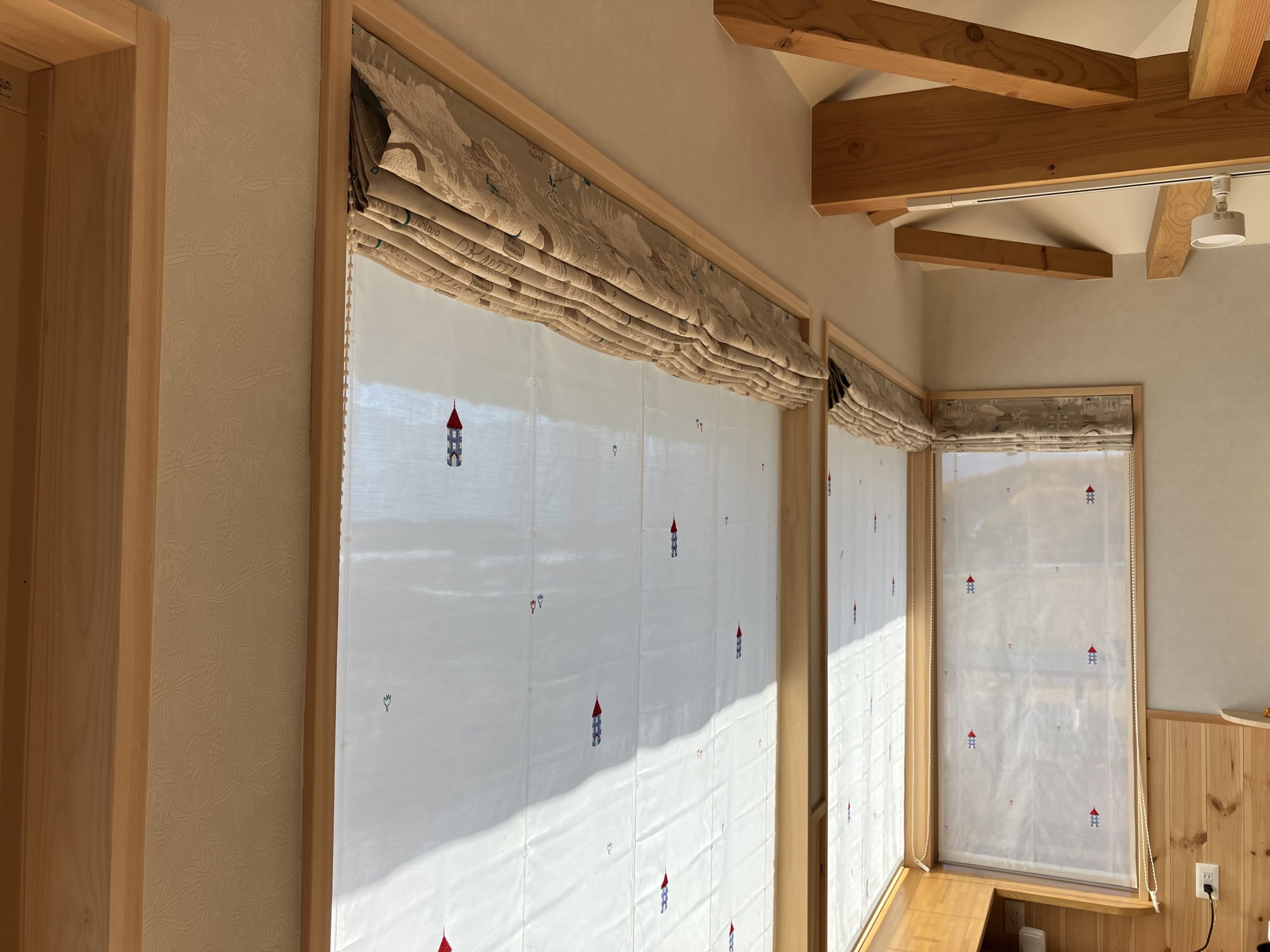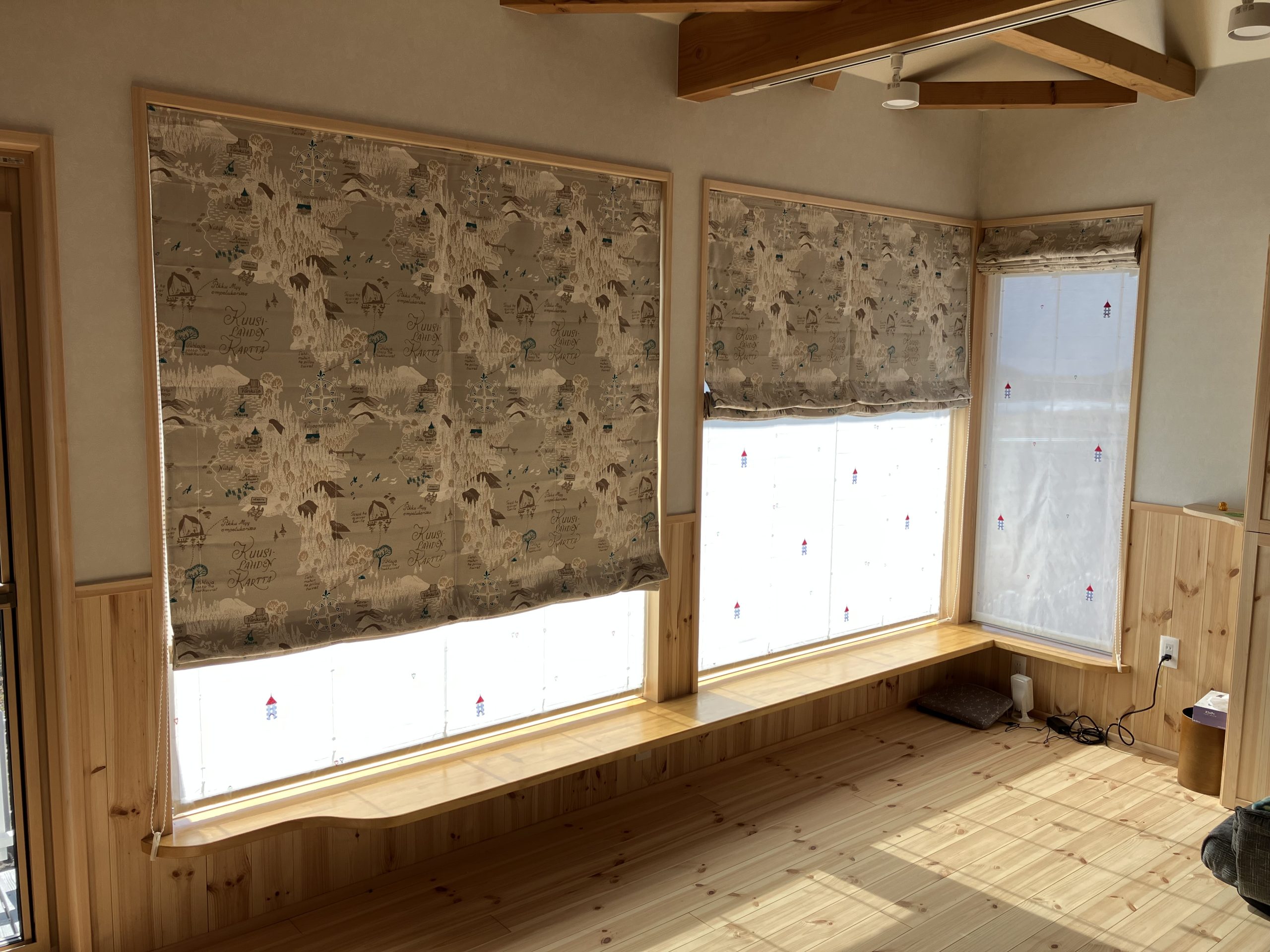 横方向にたまり代のない、上下に昇降操作となるローマンシェードの設置となりました。